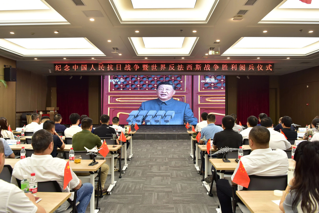 屏幕上,受阅将士步伐铿锵、坚定无比,坦克装甲气势如虹,战机梯队鹰击长空,战略导弹作为镇国神器威严亮相,令人心潮澎湃。全体员工聚精会神,聆听习近平总书记振奋人心的重要讲话,讲话引起强烈共鸣,会场多次自发爆发出热烈掌声。大家为祖国的繁荣强大感到无比骄傲与自豪,强烈的爱国情怀在心中激荡。