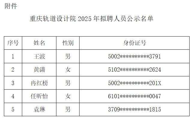 附件:重庆轨道设计院2025年拟聘人员公示名单